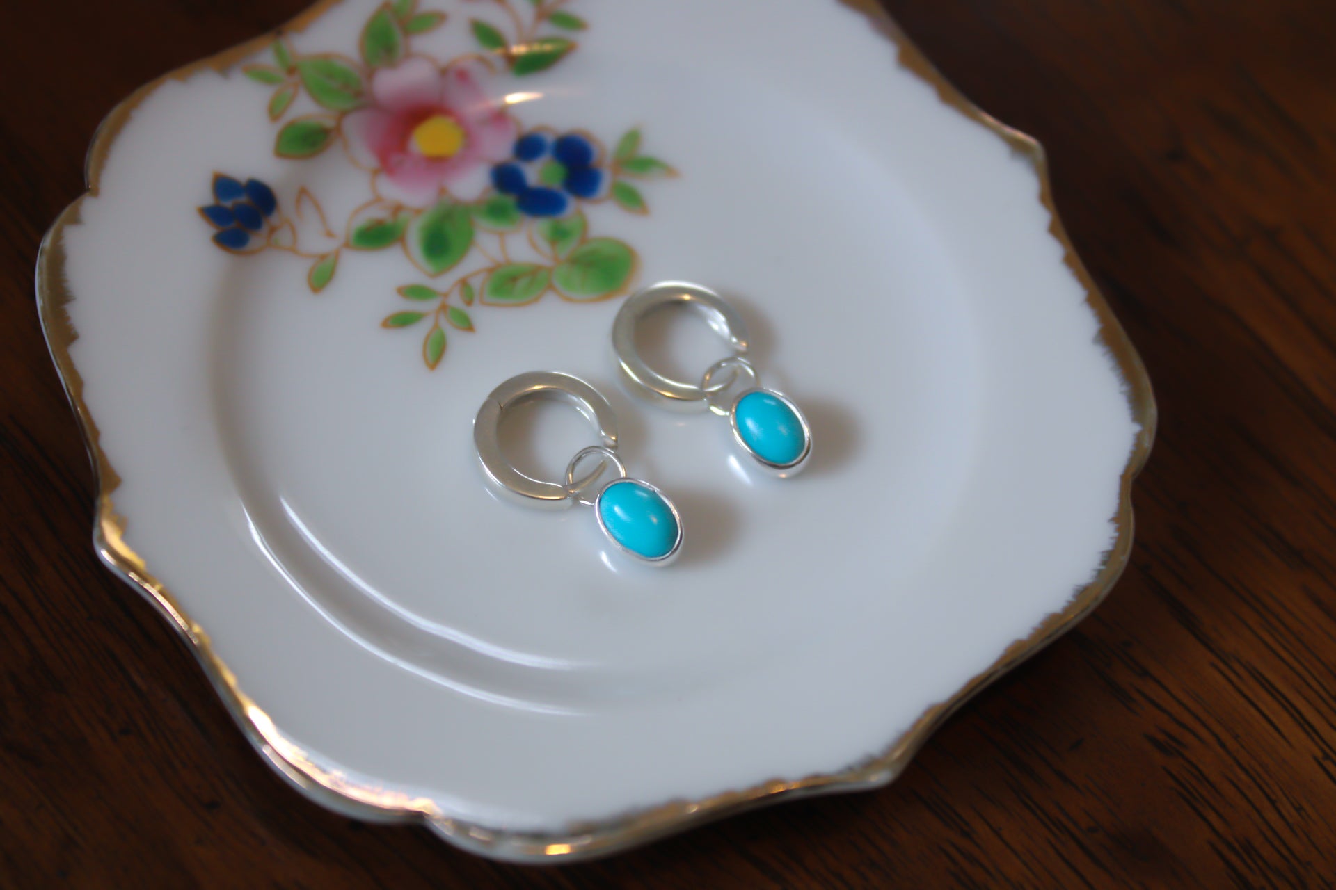 Turquoise hoop huggie earrings